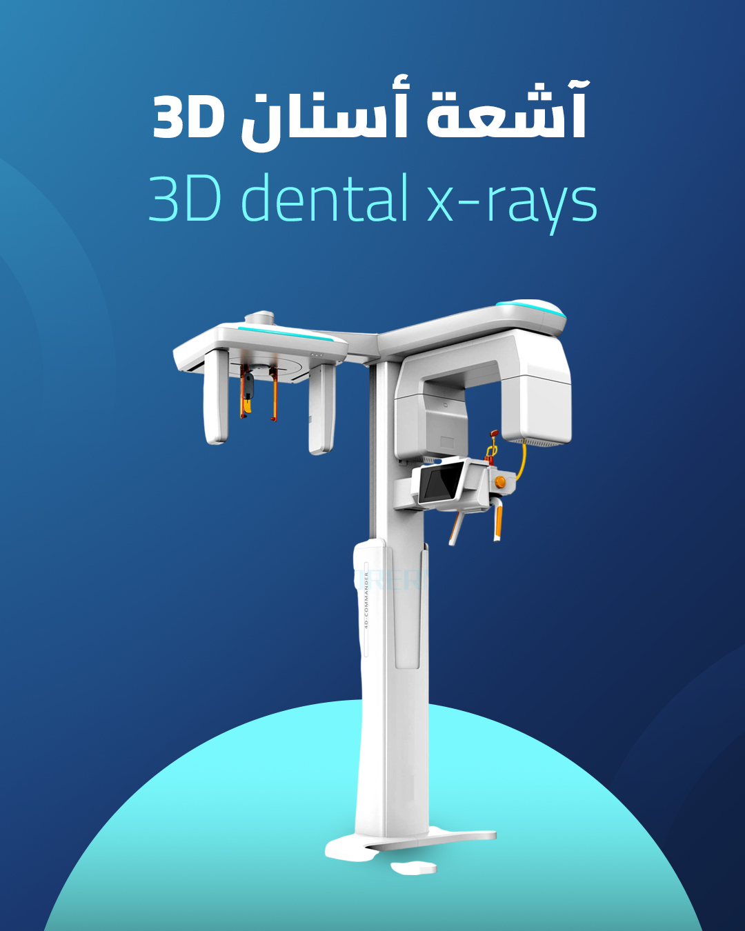 جهاز أشعة مقطعية ثلاثي الأبعاد للفكين والأسنان. يوفّر صورًا دقيقة تساعد الأطباء في التخطيط الدقيق لزراعة الأسنان وتشخيص مشاكل الفم والفكين.